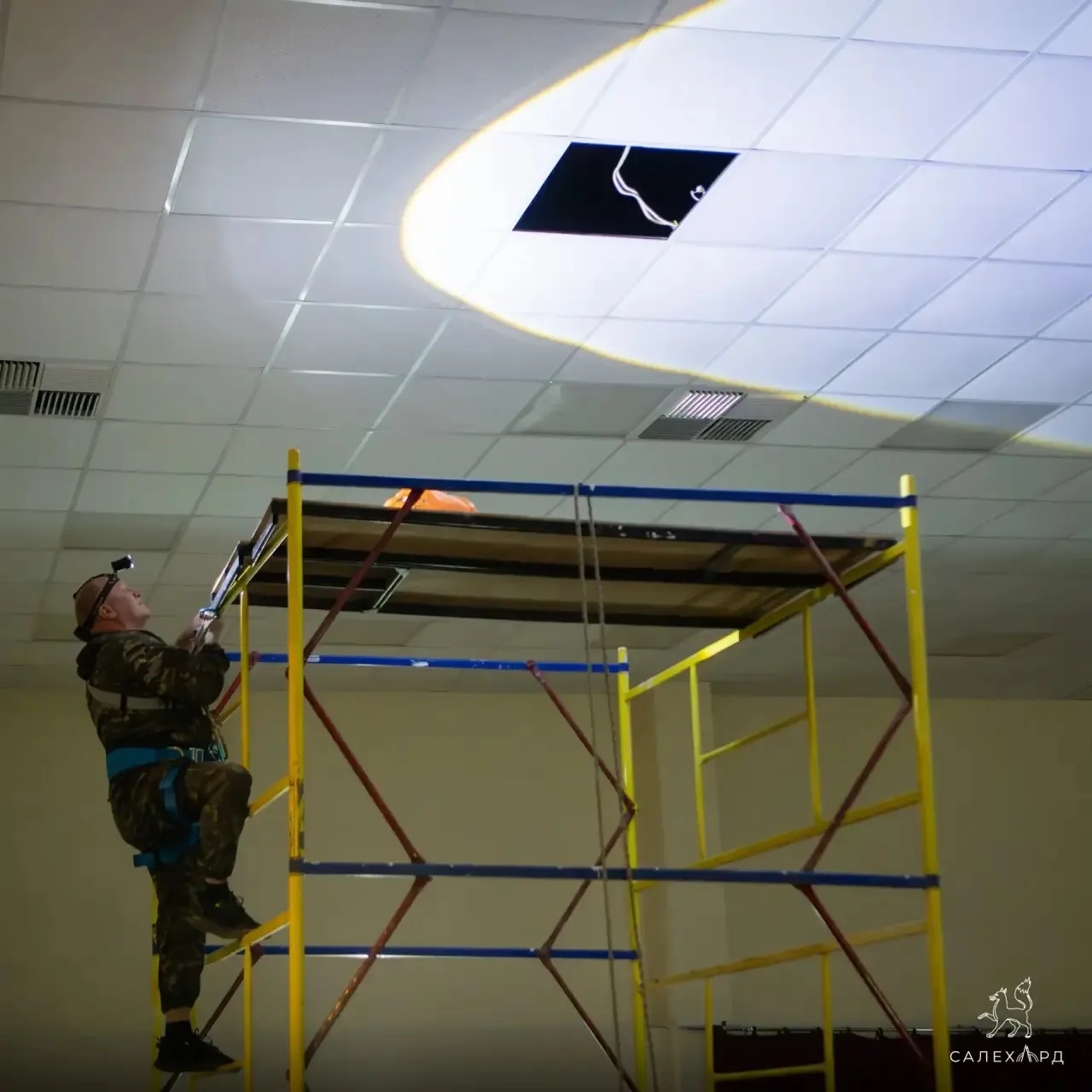 Сегодня во второй школе специалисты меняют светильники в актовом зале