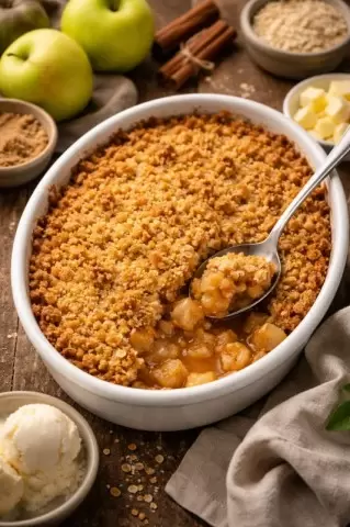 Важно помнить, что крамбл не следует подавать сразу после приготовления. Надо дать ему постоять хотя бы 15 минут. Это время даст возможность структуре стабилизироваться, а вкусам объединиться.