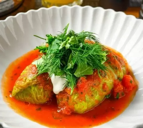 В меню можно попробовать, например, голубцы с фасолью, поданные под томатным соусом, а также мусаку с фасолью, которая приятно удивит своим вкусом.