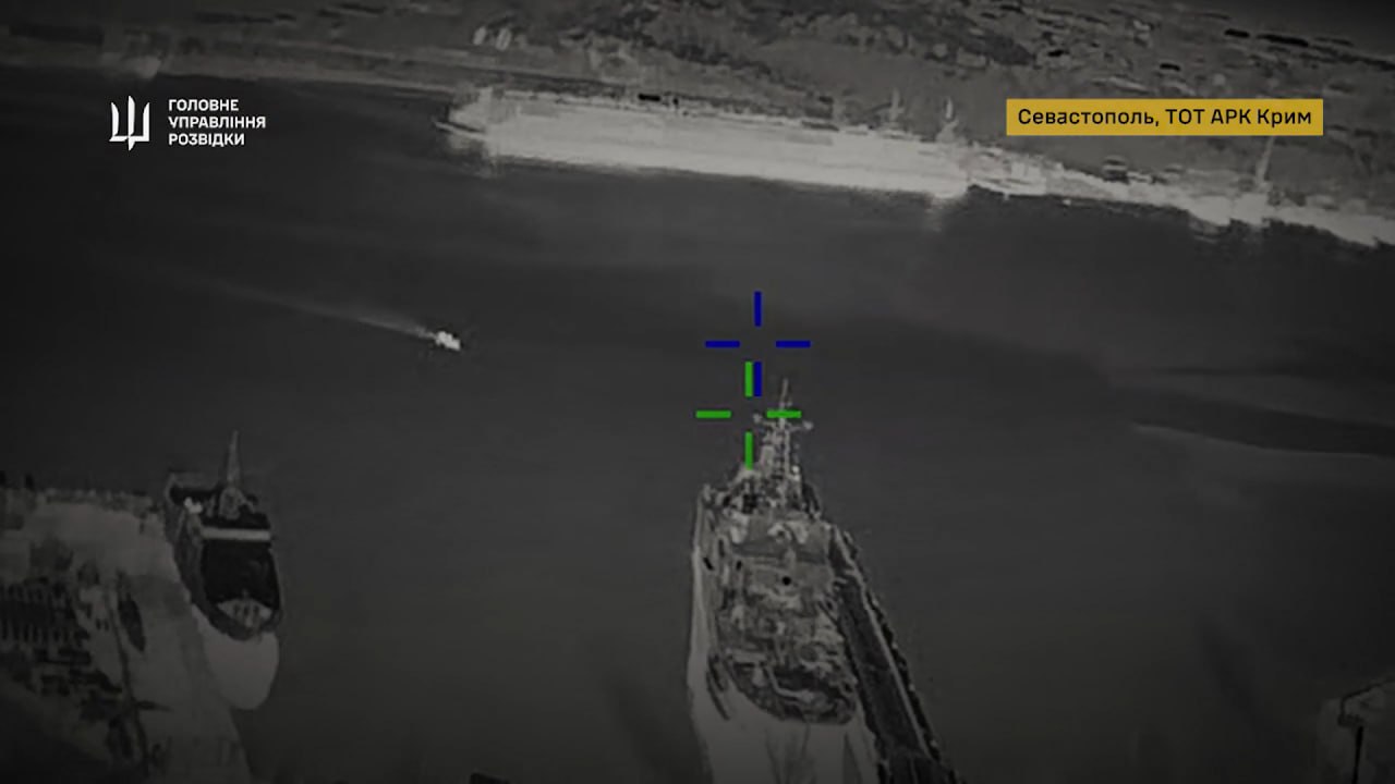 Поражение БДК проекта 775 «Ямал», БДК проекта 1171 «Николай Фильченков» и вращающегося макета РЛС 48Я6 К1 «Подлёт» украинскими дронами-камикадзе на Starlink в бухте Севастополя в ночь с 18 на 19 апреля.