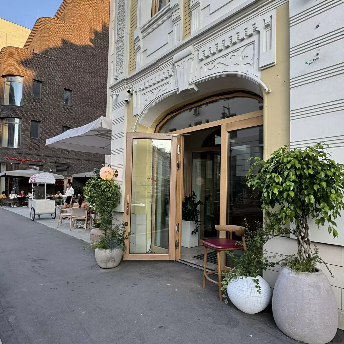 Помещение ресторана AmPm сохранило много элементов, характерных для его предшественника. Здесь два зала: первый, с большими окнами и зелеными диванами, создает поздравление с улицей. Вдохновляющие панно и необычные формы столов добавляют уникальности. Во втором зале царит светлая палитра — бело-бежевые тона, декор с каменным прилавком и зелеными акцентами в виде оливкового дерева. Для летних вечеров здесь открыта веранда, разделенная на две части — одну для ресторана, другую для любителей кальянов.