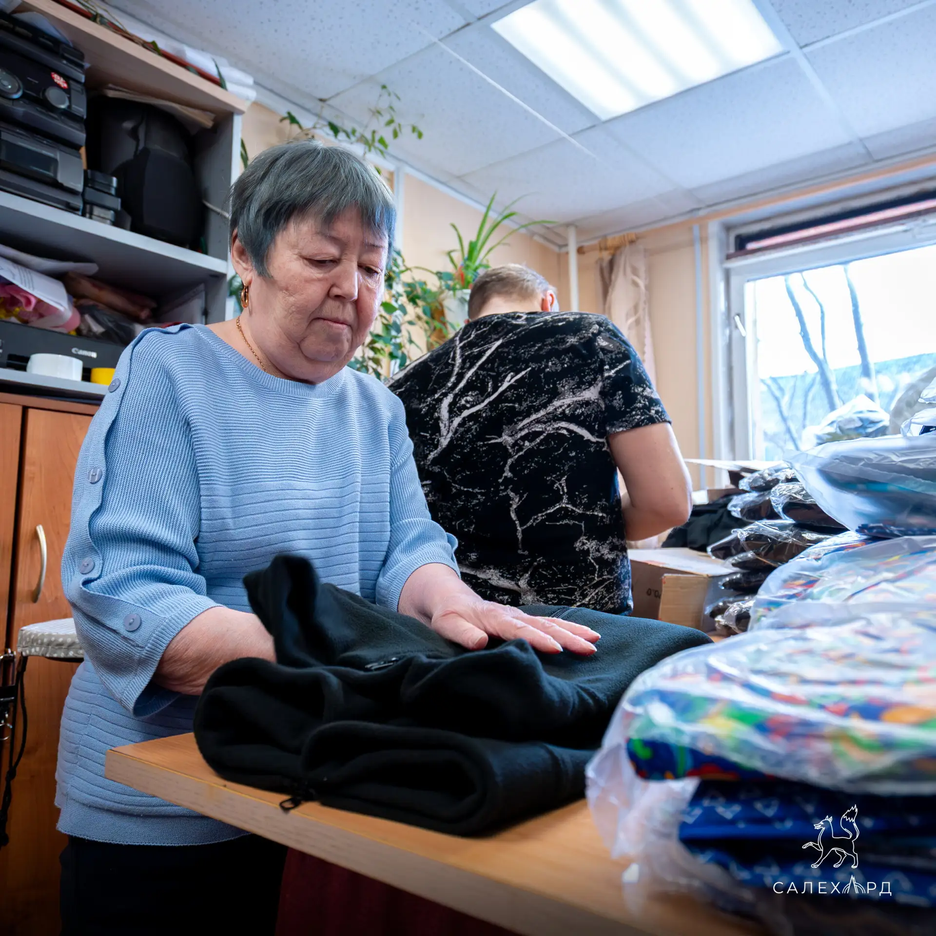 Представители Региональной общественной организации инвалидов ЯНАО «Надежда» и волонтёры объединились, чтобы поддержать наших ребят на передовой. За два месяца мастера отшили сотню флисовых кофт для бойцов в окопах. Каждое изделие создано вручную - с особой заботой и вниманием к деталям. На каждой кофте вышит главный символ окружной столицы.