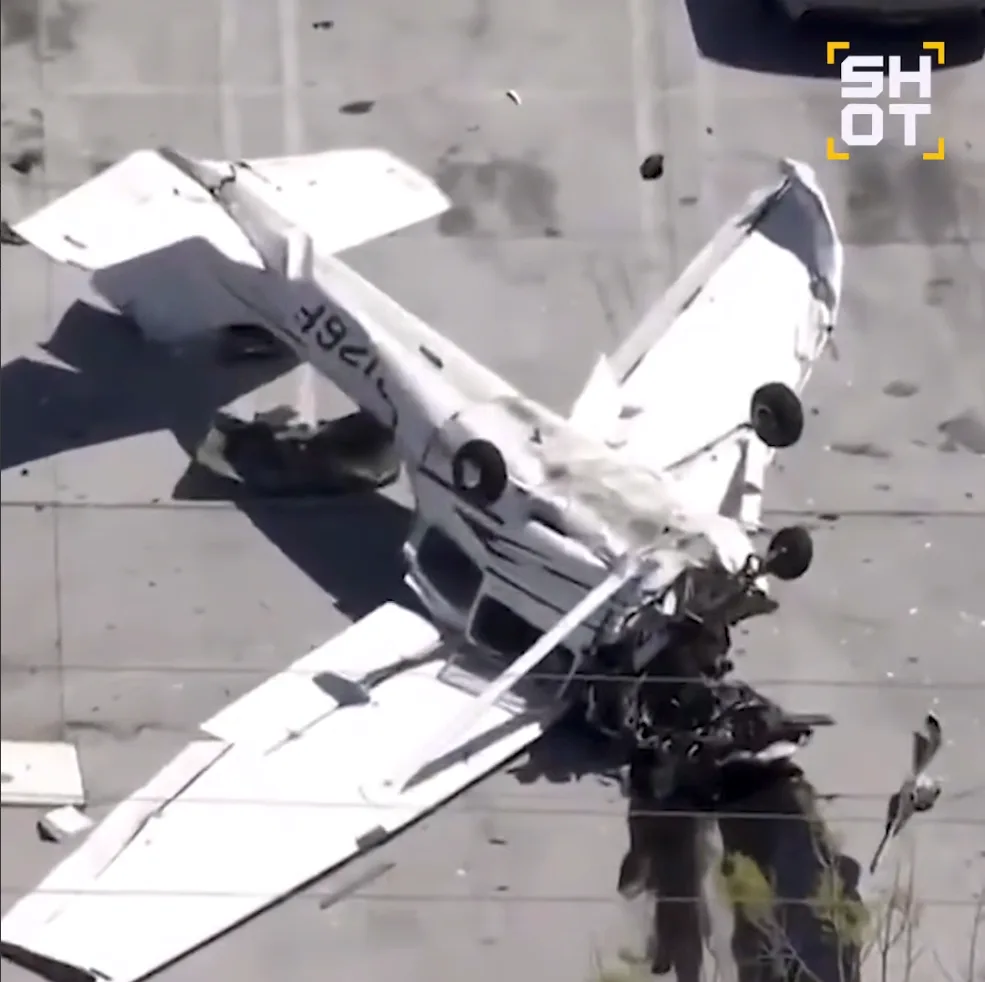 Самолёт рухнул на парковку около жилого дома в Лос-Анджелесе. 70-летний пилот находится в критическом состоянии. Жертв нет.