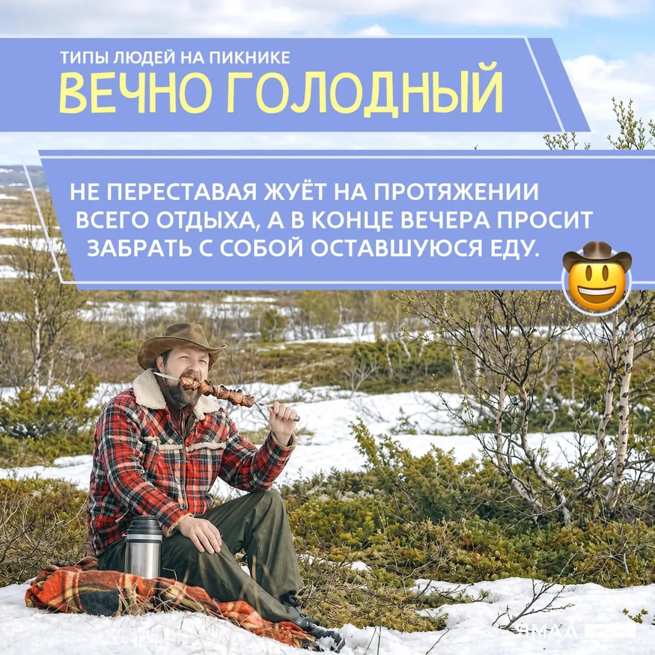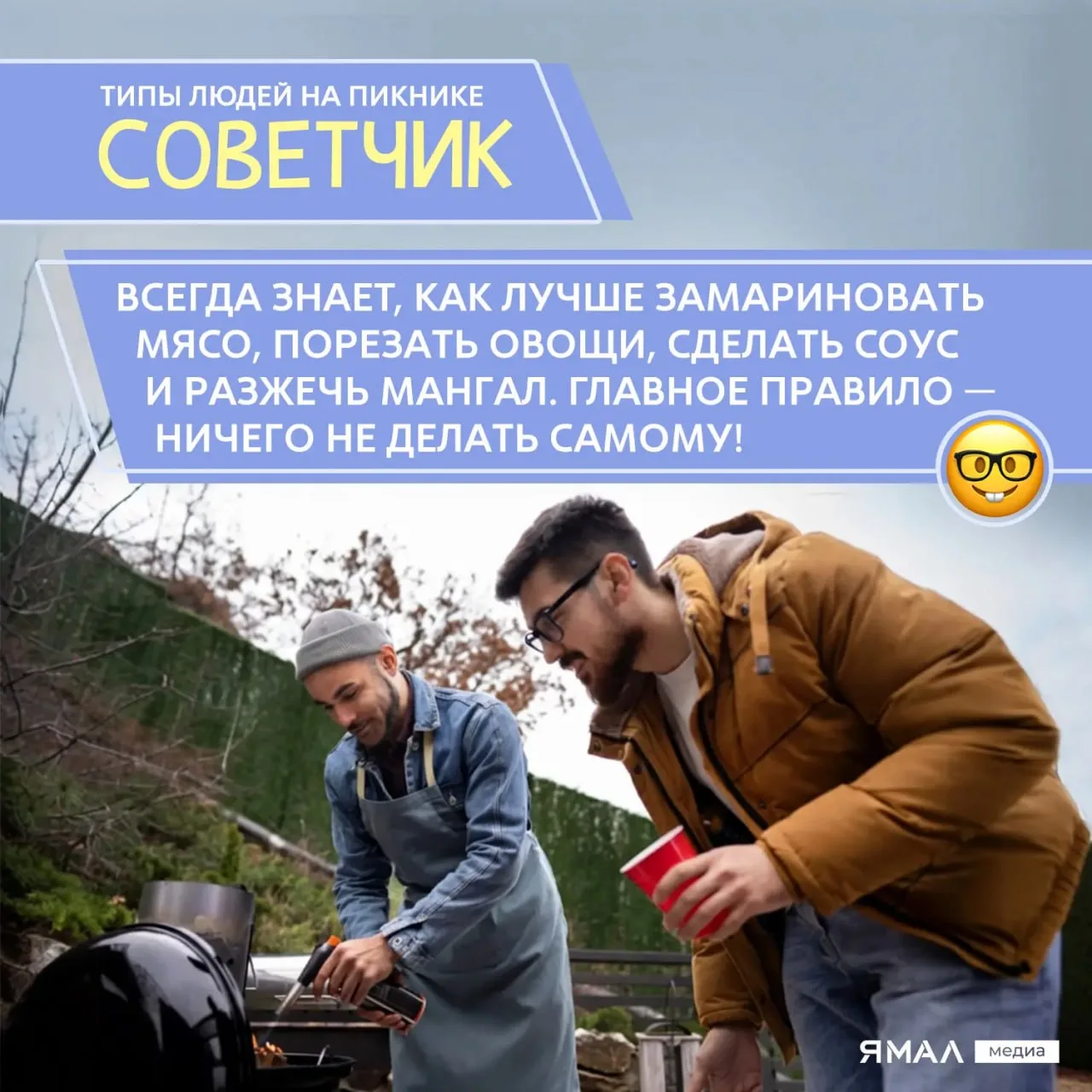 Мы уже предвкушаем этот аромат шашлыков на природе, пригревающего солнца и песни у костра. На пикнике люди обычно делятся на несколько типов. Попробуйте узнать себя или друзей в наших карточках