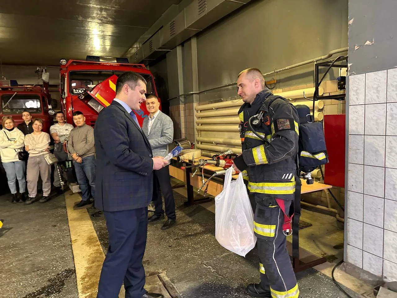 Поздравили огнеборцев с наступающим праздником! Заодно не упустили шанс напомнить о полезном — вручили памятки о действующих жилищных программах.