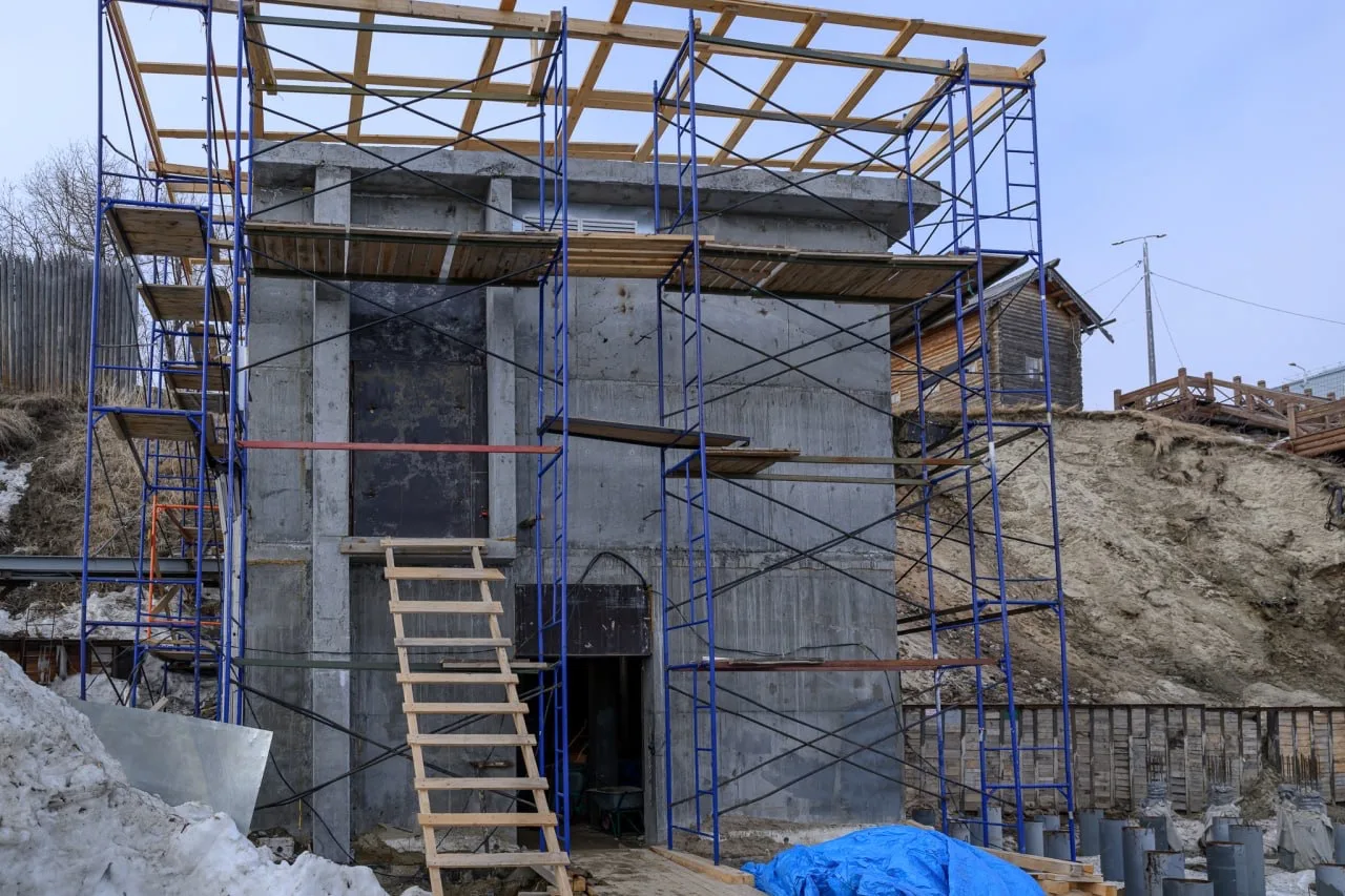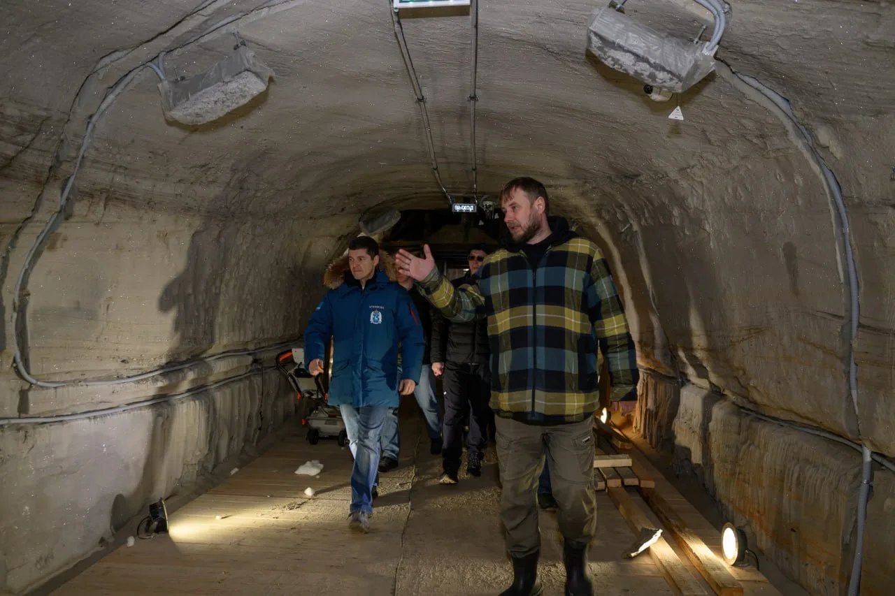 Осмотрели ход капремонта в мерзлотнике под Обдорским острогом. Сейчас строители наносят черновую штукатурку снегом, налаживают температурный режим. После обновления откроем здесь