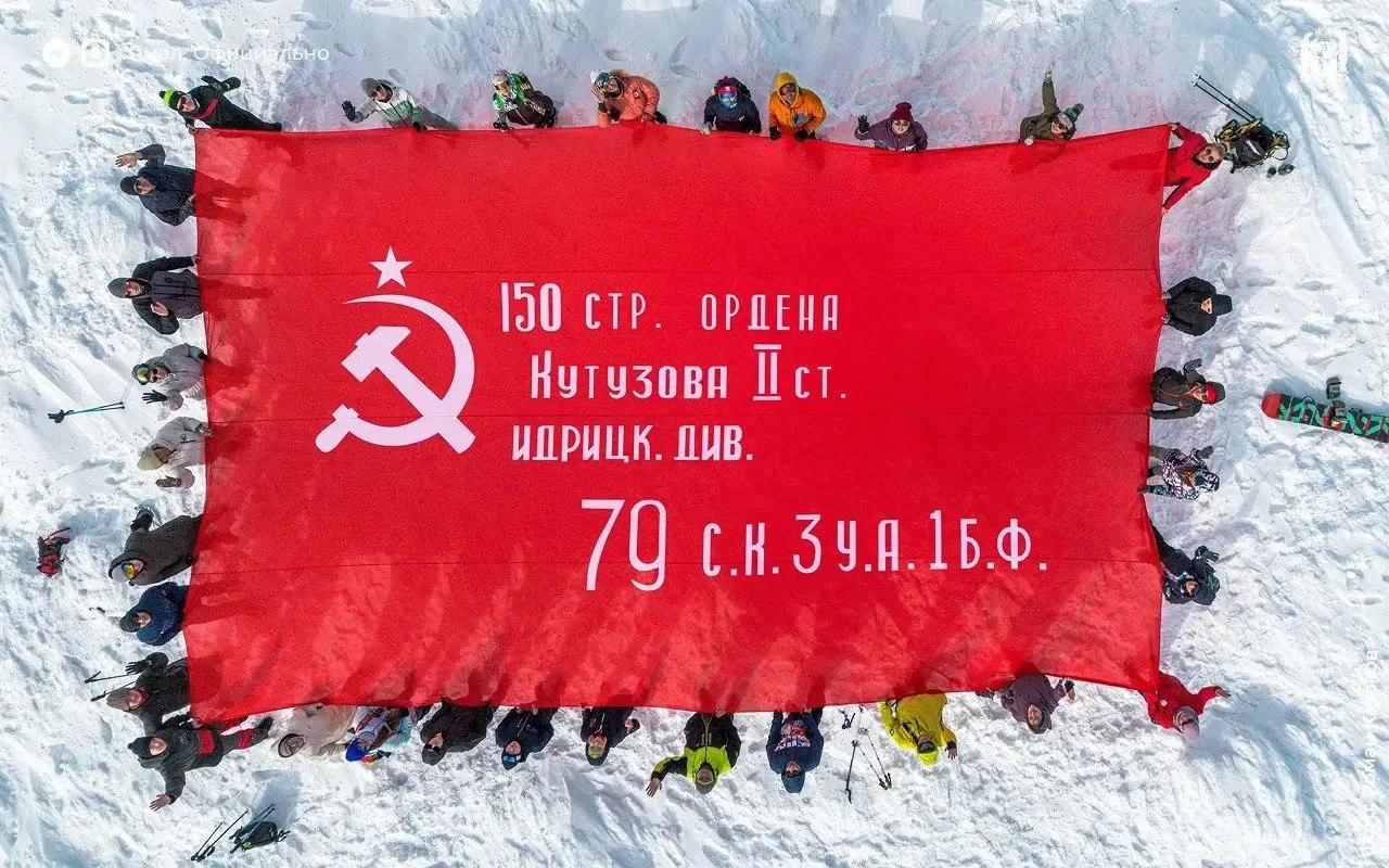 Знамя Победы развернули на горе Поур-Кеу. Акцию в честь 9 мая провели 32 любителя активного отдыха из Лабытнанги и Салехарда. Символ Победы доставили на высоту 876 метров, преодолев пешком 8 километров.
