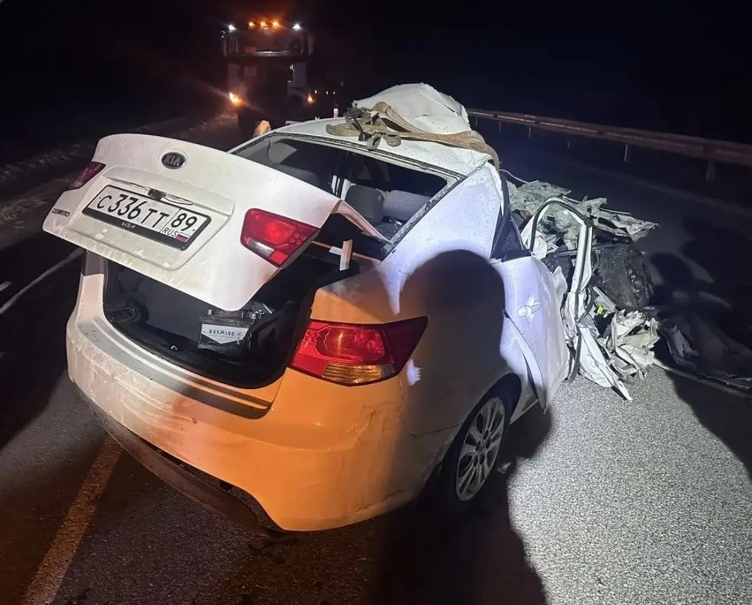На подъезде к Ноябрьску водитель KIA не выдержал безопасную дистанцию и врезался в идущий впереди КАМАЗ. После удара иномарка влетела в барьерное ограждение, и ее отбросило на полосу встречного движения.