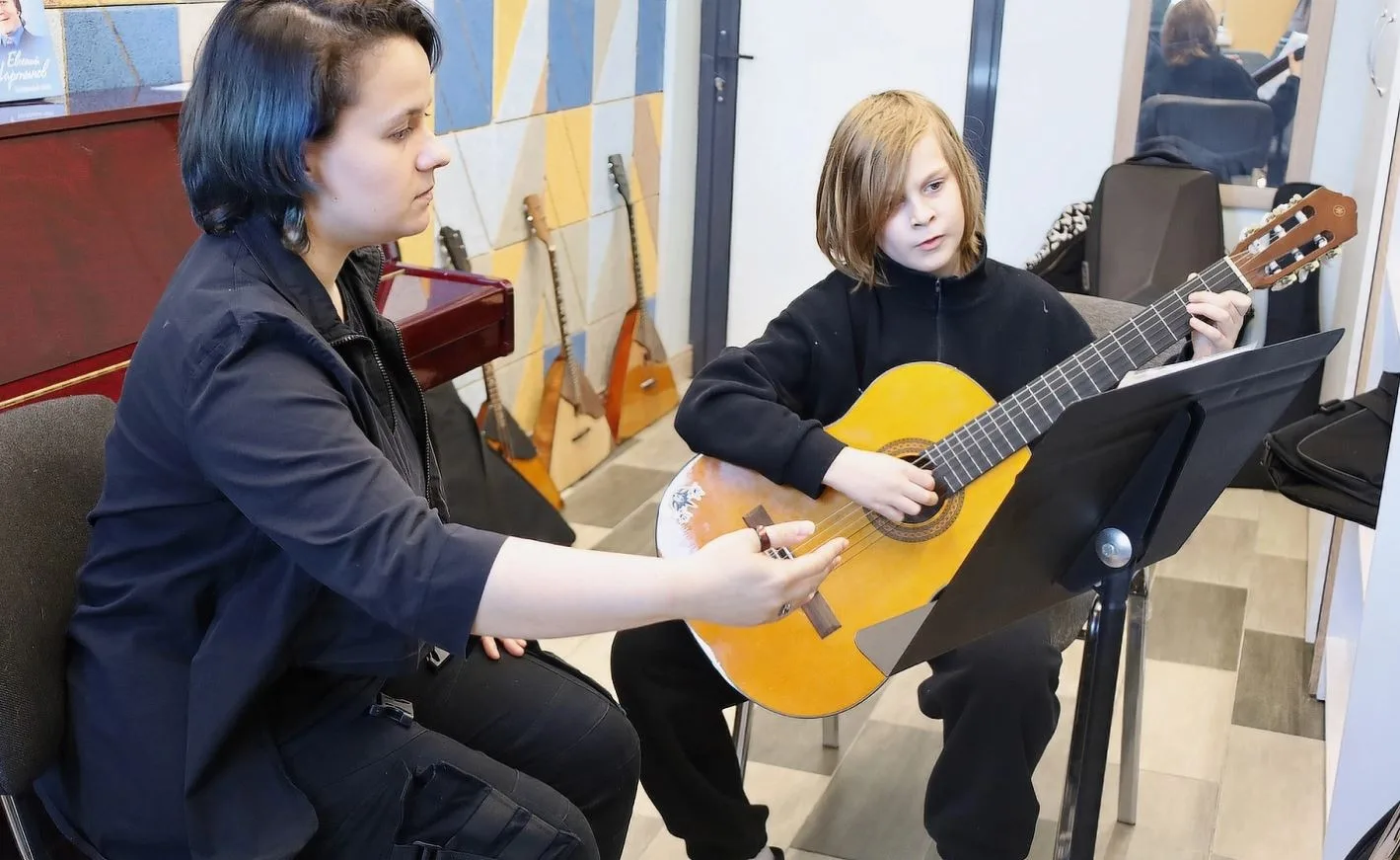 Программа включает индивидуальные занятия по игре на гитаре и баяне, уроки исполнительского мастерства, творческие встречи и концерт. В 60 занятиях участвуют более 35 детей.