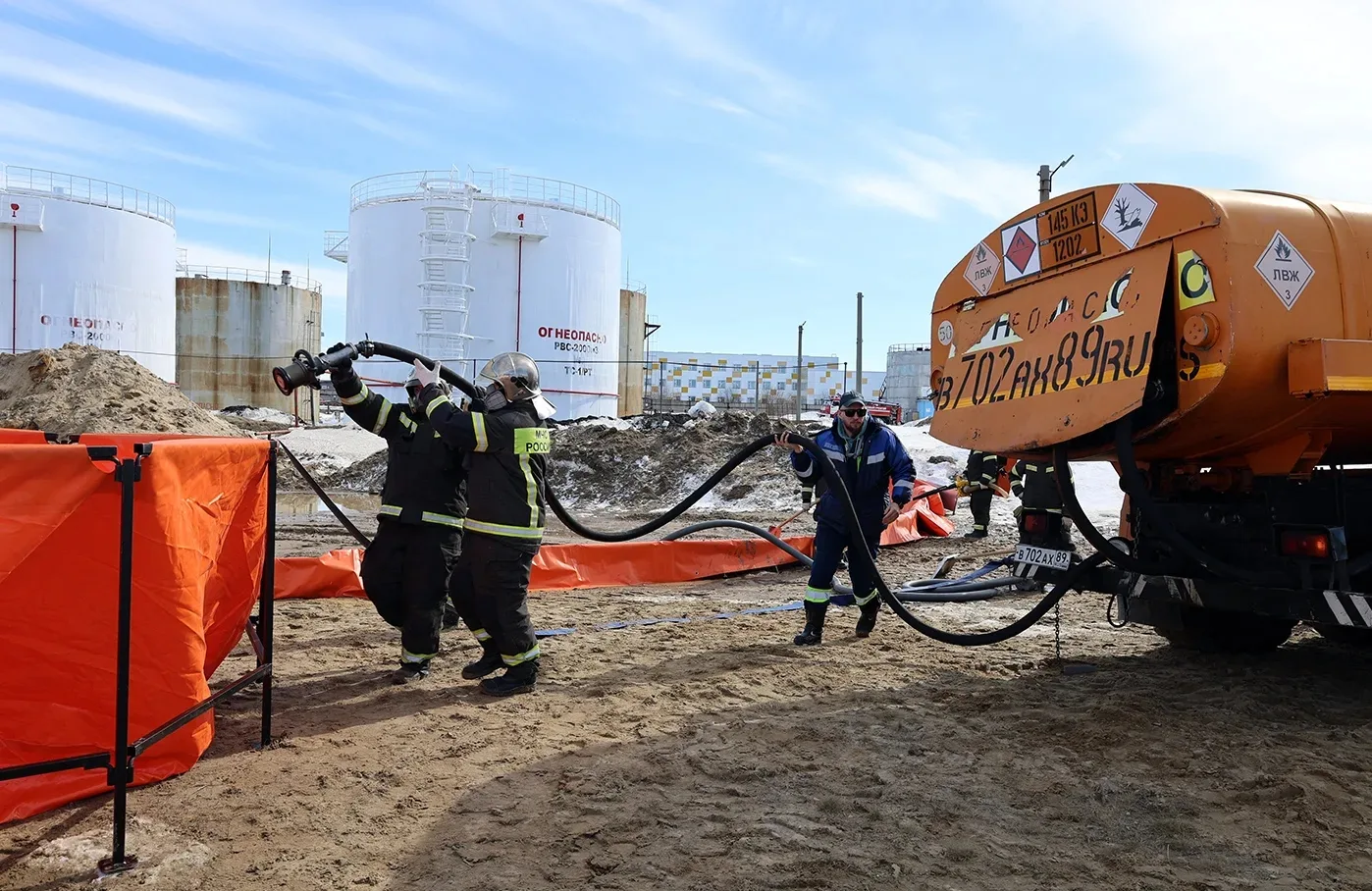 В аэропорту Новый Уренгой прошли комплексные учения аварийно-спасательного формирования авиаузла. Спасатели отрабатывали порядок взаимодействия при ликвидации розлива нефтепродуктов.