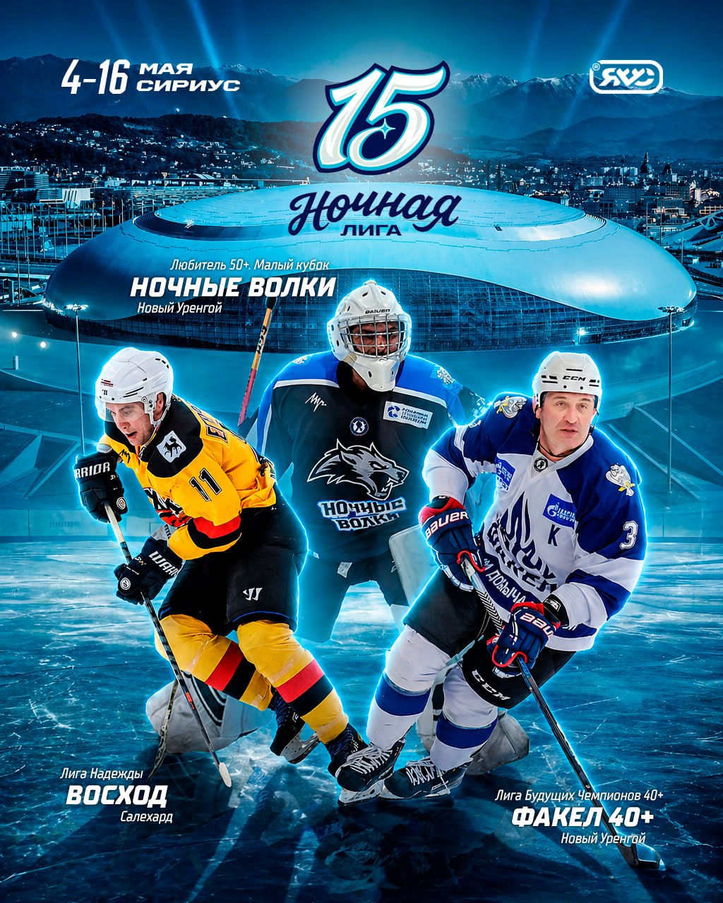 На лёд шести олимпийских арен выйдут 196 команд — игры пройдут сразу в 9 дивизионах. А на экваторе турнира, 10 мая, состоится яркий гала-матч: Легенды хоккея сыграют со Сборной Ночной лиги.